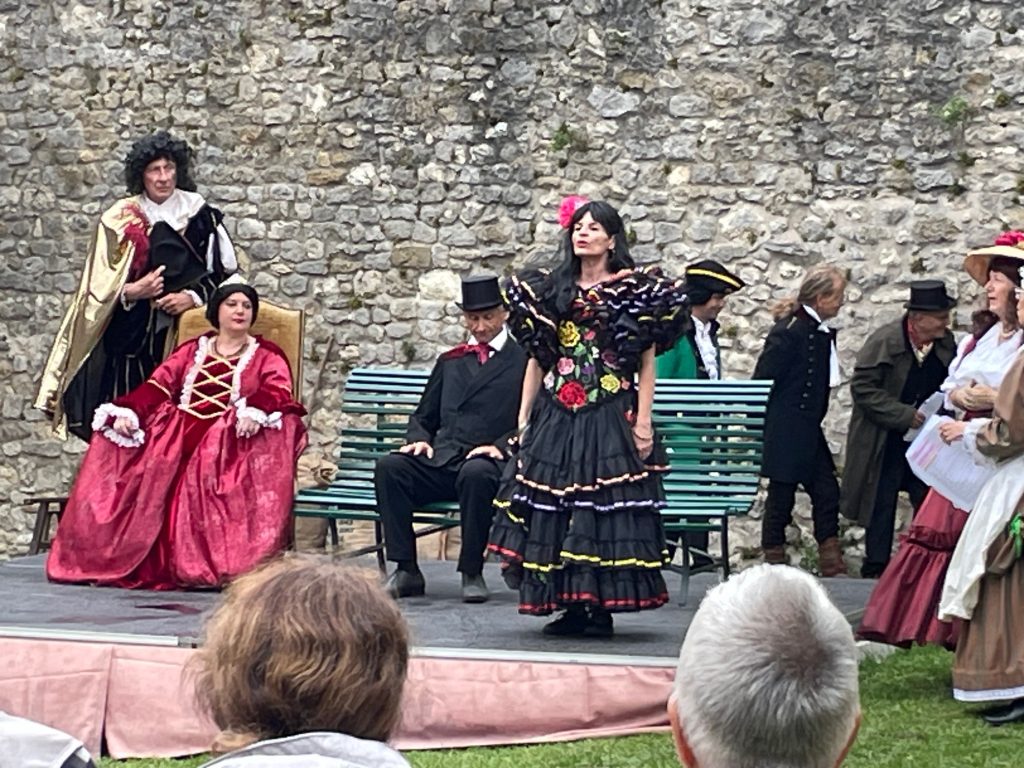 Dans le cadre des Journées européennes du Patrimoine, la troupe des Safraginaires et des comédiens de Pithiviers-le-Vieil a présenté à quatre reprises un spectacle dans la cour du château : “L’étrange rêve de Victor H.” Librement inspiré de la venue en 1834 à Yèvre-le-Châtel de Victor Hugo et de Juliette Drouet, cette pièce théâtralisée, aux accents de comédie musicale, a conquis les visiteurs qui ont pu également découvrir dans l’une des tours, Chronos, la nouvelle machine à remonter le temps.